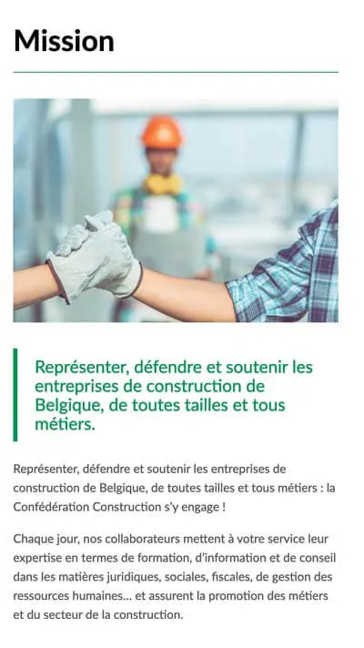 La Confédération Construction représente plus de 15.000 entreprises du secteur de la construction, tous métiers confondus. Son site web informe sur les dernières actualités du secteur, propose des formations et met à disposition des documents utiles pour les entreprises membres. C’est également une belle vitrine pour la presse et le monde politique.